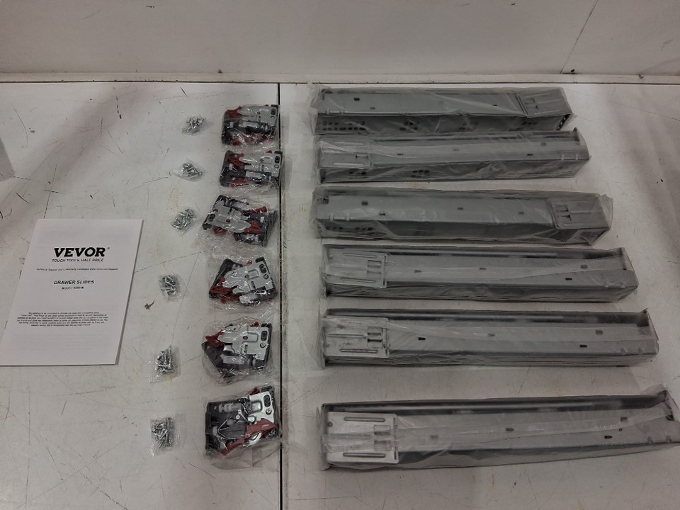 6PK heavy duty extension drawer slides - 15" - silver/grey (model:30201b.381-6)