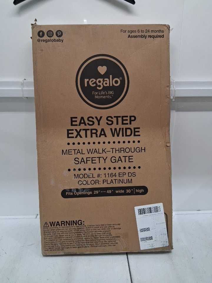 REGALO EASY STEP EXTRA WIDE METAL SAFETY GATE - 30" x 29" to 49" - platinum GREY (MODEL: 1164EPDS)