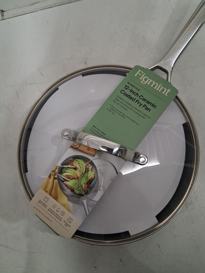 Figmint Nonstick Ceramic Coated Aluminum Frying Pan with Cover - 12" - sage green