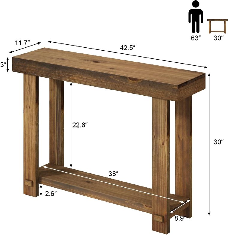 HokyHoky Solid Wood Console Table for Farmhouse Entryway Table Thickened Tabletop and Legs - 42.5" - Natural Wood - (Model: ‎FZCY016)