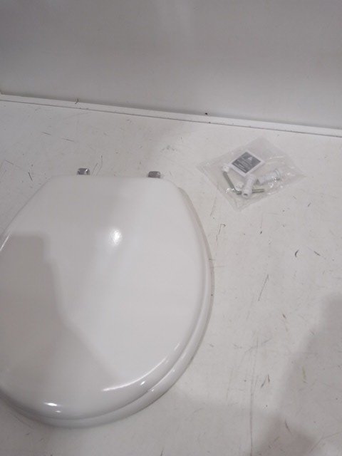 MAYFAIR BY BEMIS EDGEWATER DURABLE 18.5" ENAMELED WOODEN ELONGATED TOILET SEAT - WHITE (MODEL: 1844CP000)