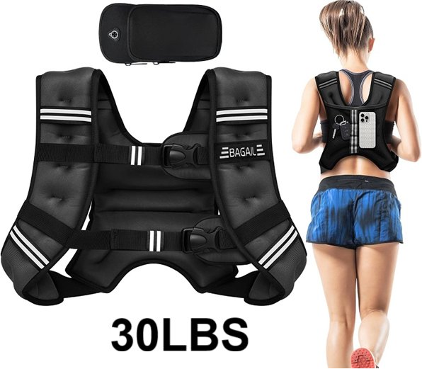 BAGAIL Weighted Vest with phone holder - 30lb - black