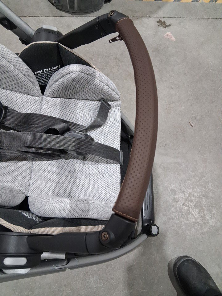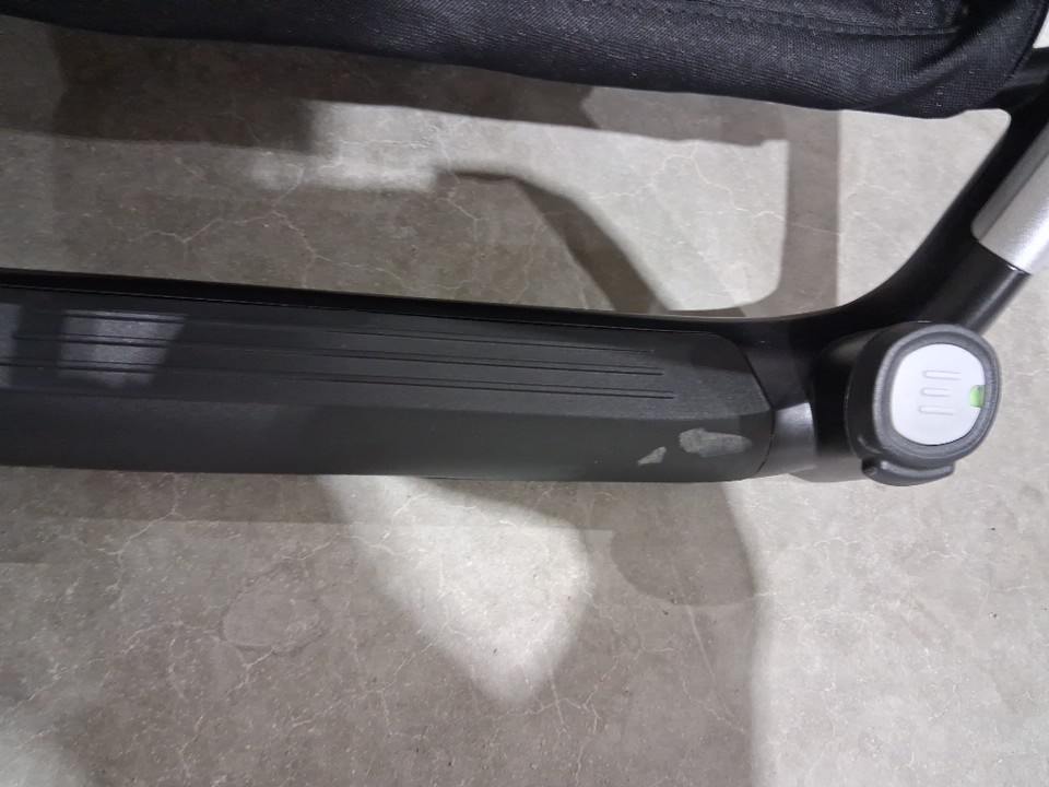 there is some light dirt on the foot rest near the bottom of the stroller. and wheels .