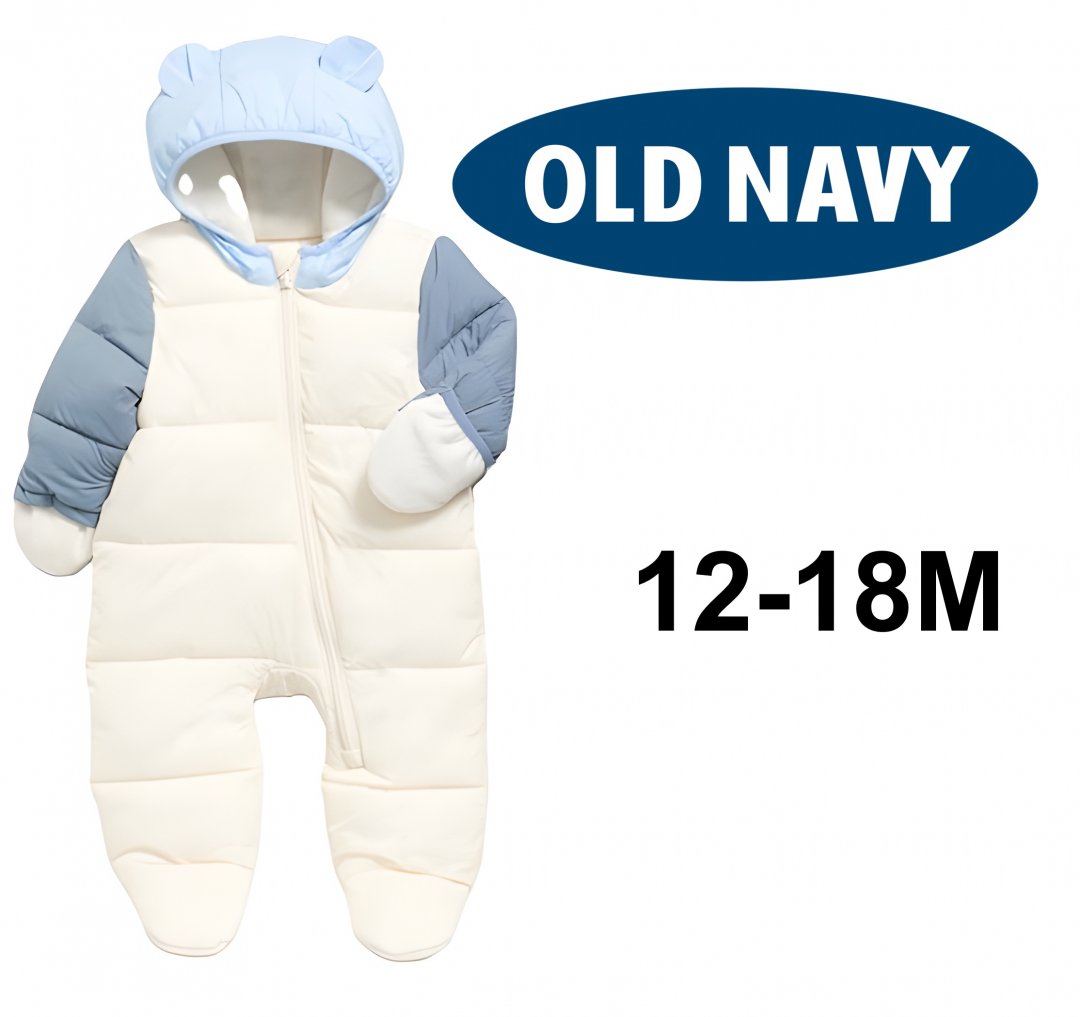 Baby Old Navy Water-Resistant Frost Free Puffer Snowsuit wIth Hood - 12-18 Months - Blue/White