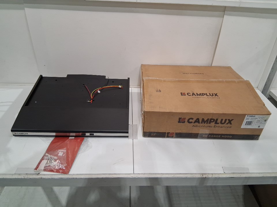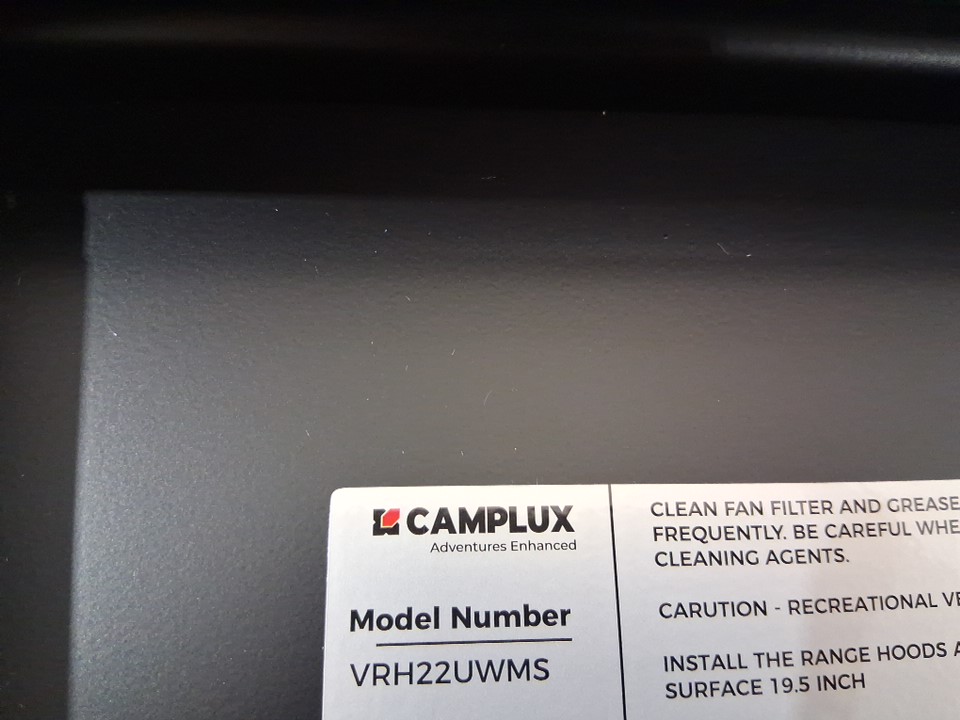 camplux rv vented range hood with led lights - 22" - 12v dc 0 - black/stainless steel (model: vrh22uwms)