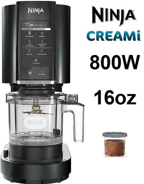 Ninja Creami Ice Cream Maker - 16OZ Capacity - 800w - Black (Model: CN302CCO)