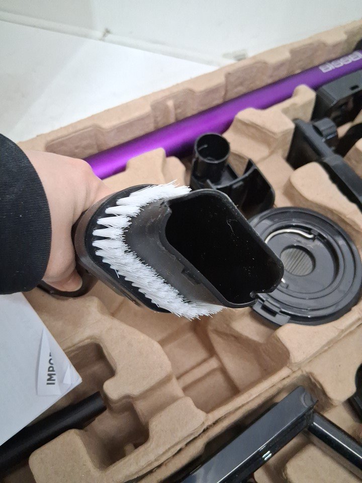 item has some dust and fuzz inside and hair on main brush from previous use please refer to pictures tested for power