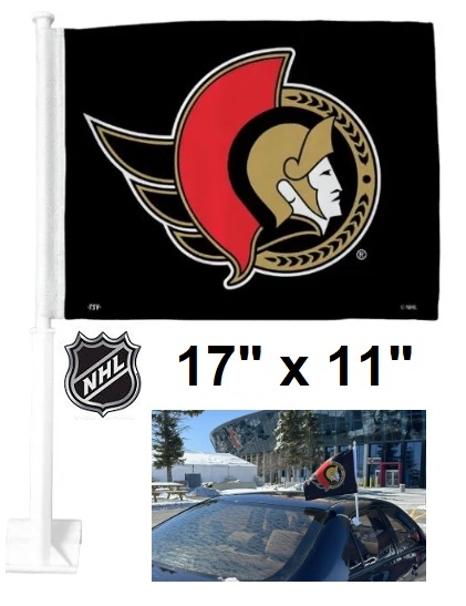 NHL Ottawa SENATORS double-sided CAR FLAG for car window - 17" x 11" - red/black/gold