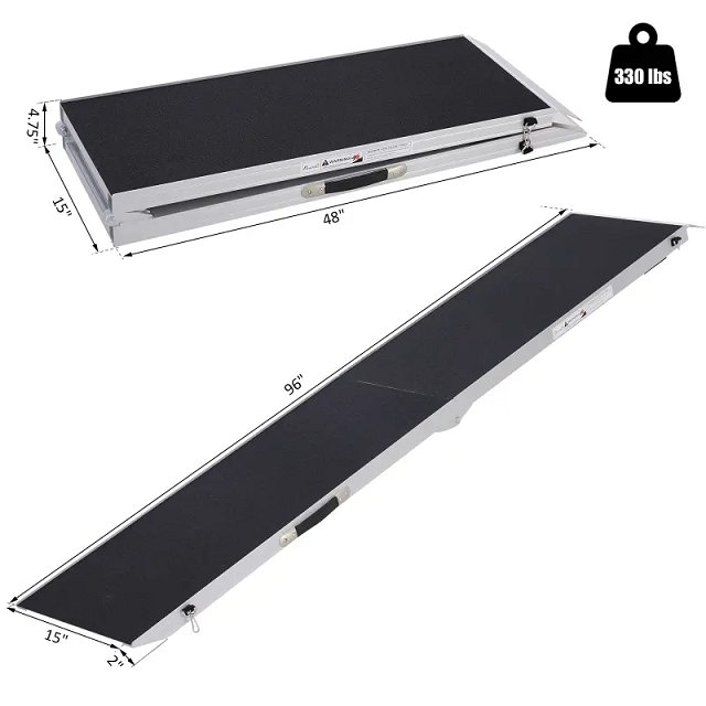 bi-folding portable pet ramp for large truck/suv - 96" x 15" - Black/silver