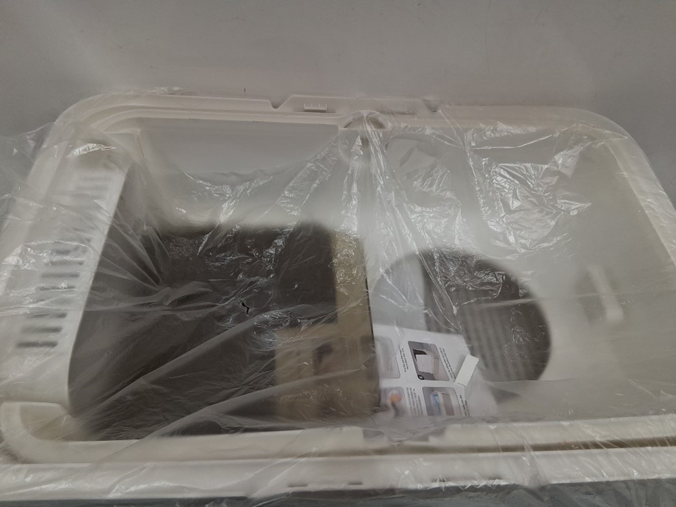 zuqqony stainless steel Fully Enclosed Sifting Cat Litter Box with Lid - 23.6" x 15.7" x 19.4" - silver/white/grey