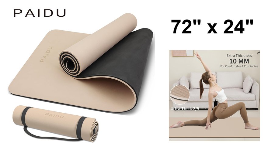 Paidu Non-Slip & Tear Resistant Extra Thick SGS-Certified POE Yoga Mat w/Carry Strap - 72" x 24" - Milk Coffee/light Brown - (Model-PAIDU-POE)
