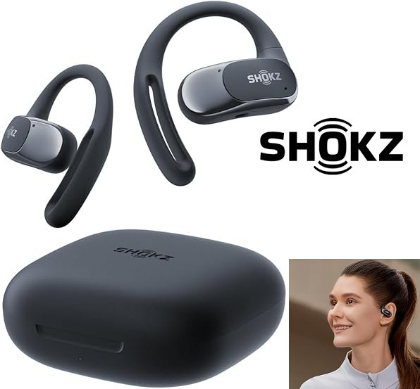 shokz openfit air water resistant wireless secure earhooks earbuds - black (model: t511)