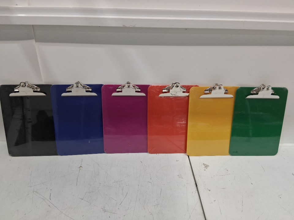 6PK Plastic Clipboards With Metal Clip - Assorted Colours