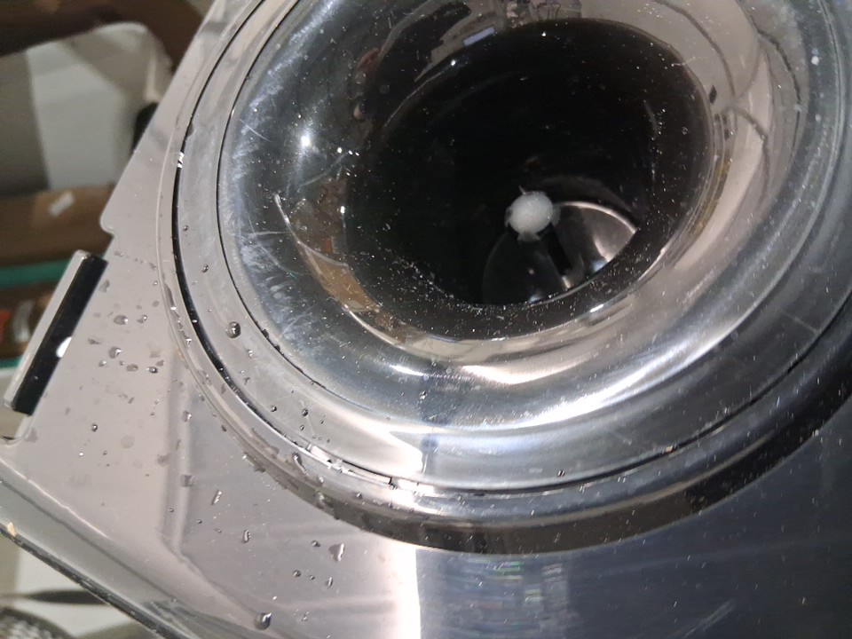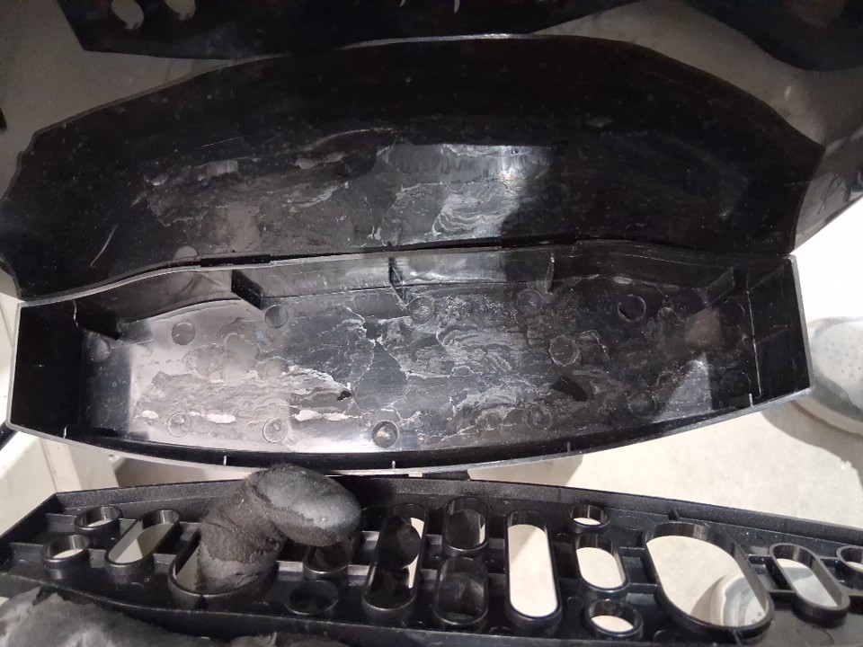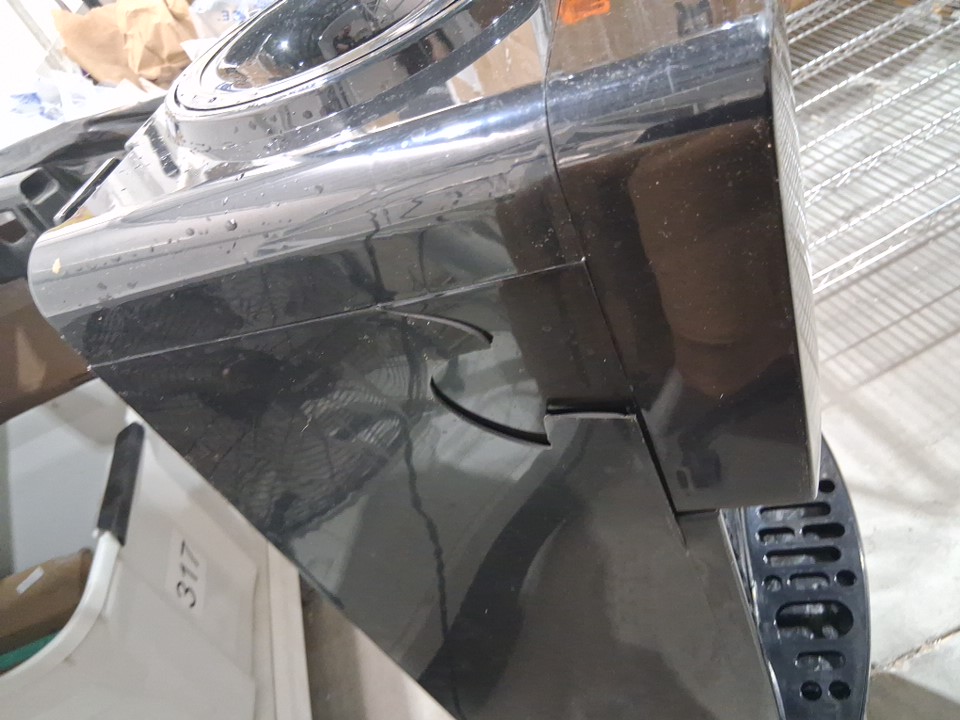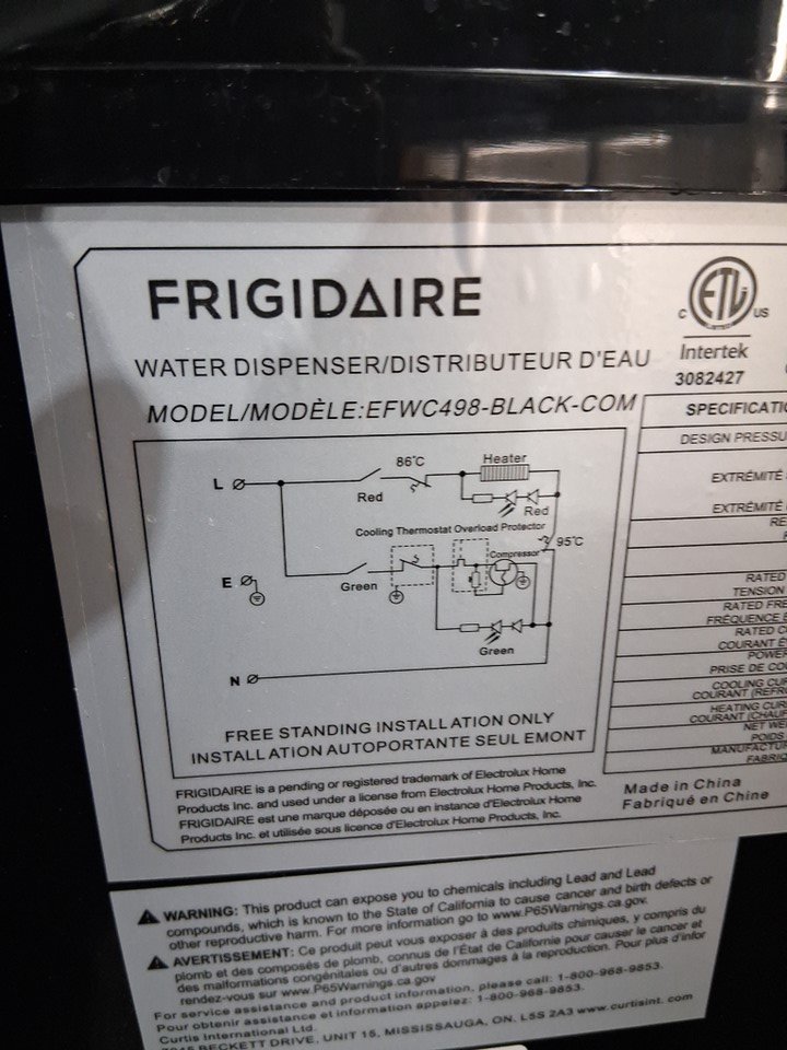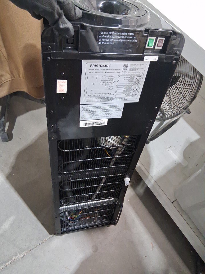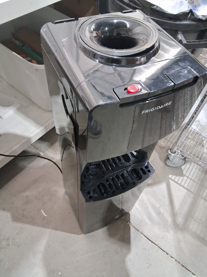 Parts of the side have broken off and are cracked Water on the outside of the unit at the top, dried water in drip tray Tested for power only