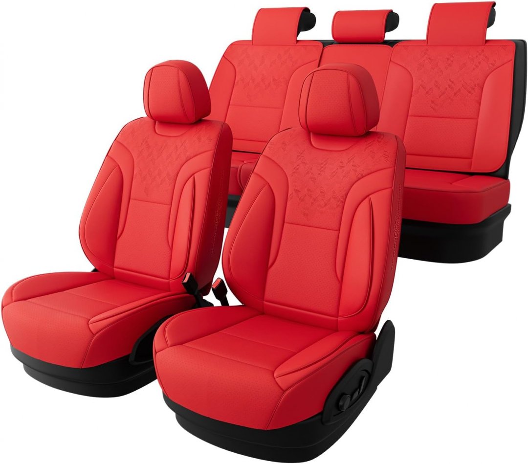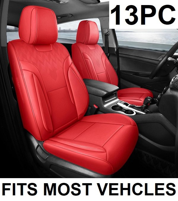 13PC FEINEPRO FULL SET CAR SEAT COVERS FOR MOST SUV, PICK-UP TRUCK - RED (MODEL: Q350360-02-X1-Red-GH)