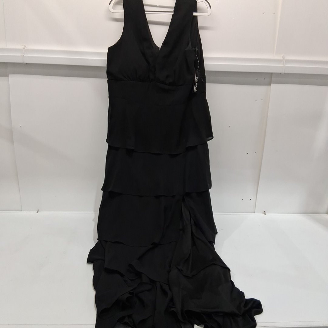 WOMEN'S R&M Richards Long Pebble Georgette V-NECK Dress WITH Multi-Tiered Skirt - 18 - BLACK (STYLE:6166)