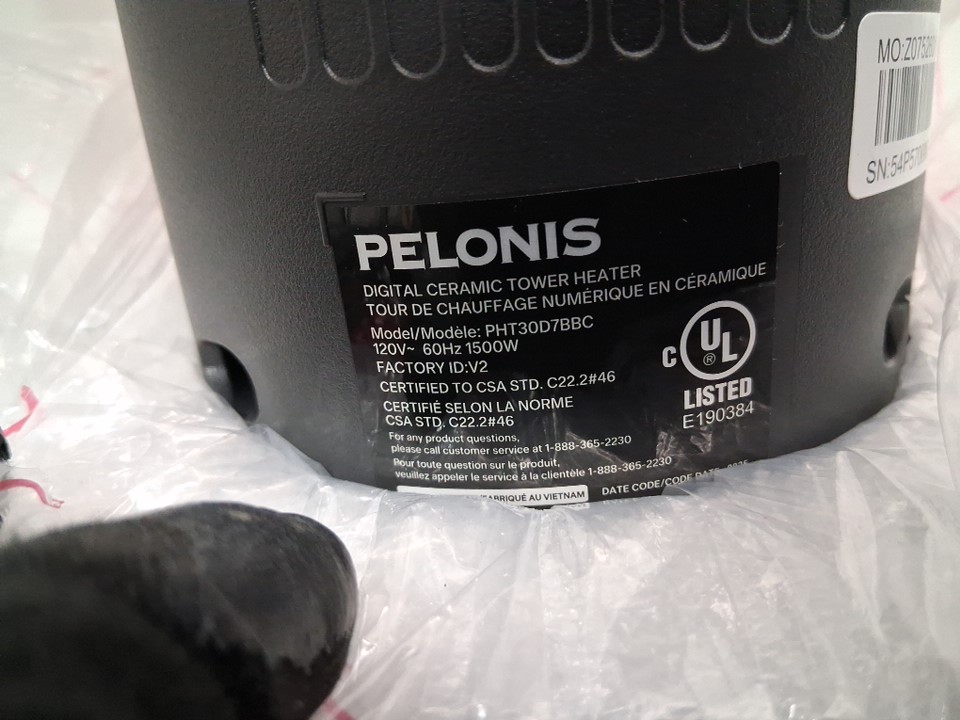 pelonis ceramic tower space heater with adjustable thermostat, 75° oscillation, remote control, and 12h timer - 30" - 1500w - black (model: pht30d7bbc)