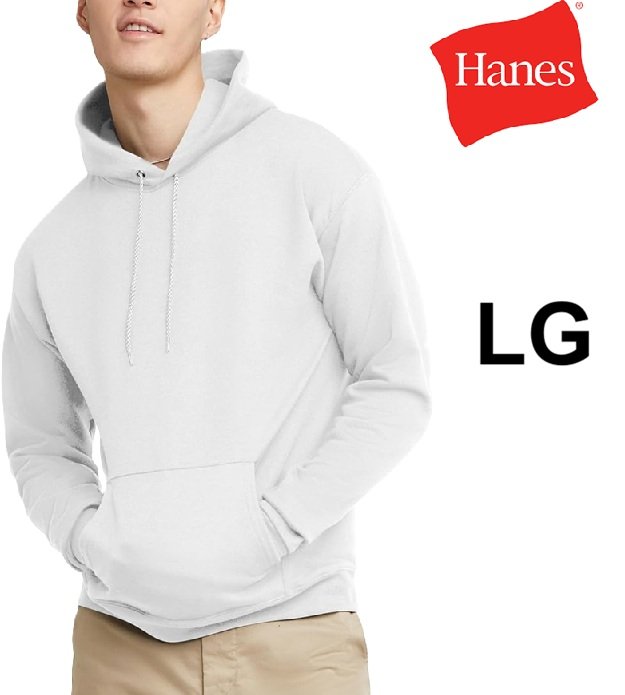 MEN'S HANES ECOSMART MIDWEIGHT FLEECE PULLOVER HOODIE - LARGE - WHITE