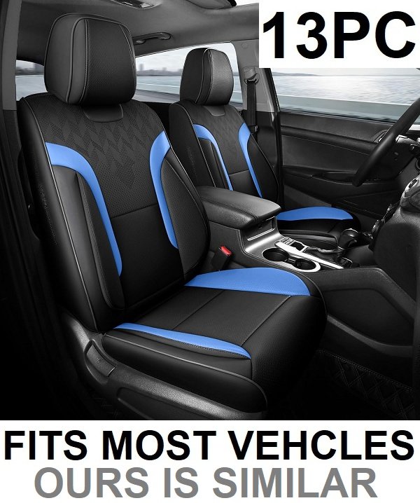 13PC FEINEPRO FULL SET CAR SEAT COVERS FOR MOST SUV, PICK-UP TRUCK - BLACK/BLUE