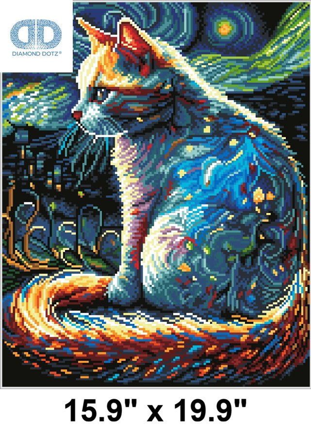 Diamond Dotz Starry Night Cat Canvas Gem Kit - 15.9" x 19.9" - Multi Coloured