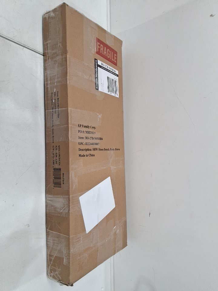 simple houseware Metal frame Wooden Top Shoe Rack Bench/shoe organizer for Entryway Storage - 11.25" x 29" x 17" - Rustic Brown/black (model: ‎BO-27B-N)