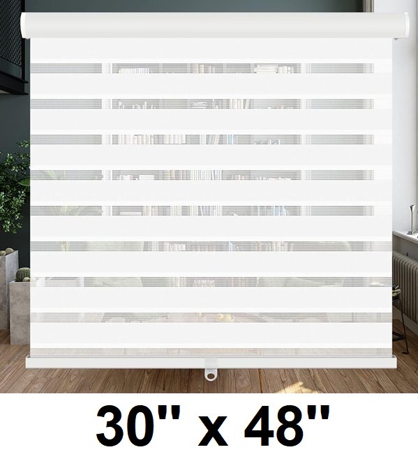 LuckUp Cordless Zebra window Blinds - 30'' x 48" - WHITE (model: dzstbml)