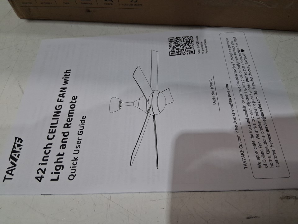 TAVZAKE flush mount remote control ceiling fan - 42" - Wood/WHITE (MODEL: TCF001-MW-US)