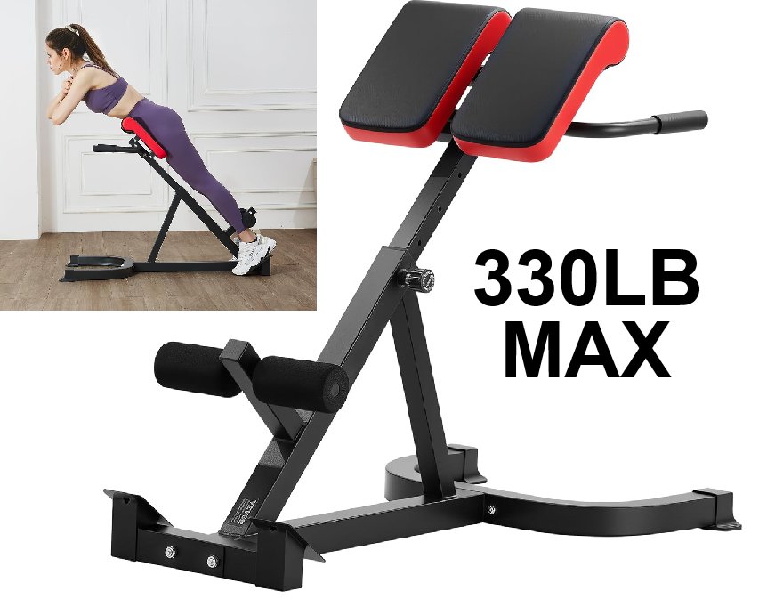 Roman Chair Hyperextension Adjustable & Foldable Extension Bench Machine - 330LB MAX - Red/Black - (Model: SJ1016)