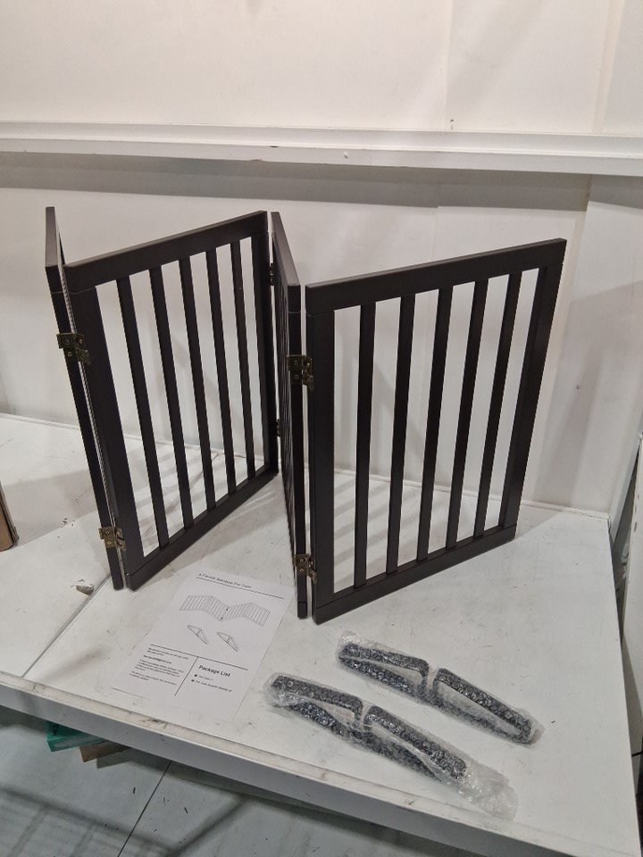 Semiocthome 4-PANEL FREESTANDING FOLDABLE WOODEN PET GATE DESIGNED FOR SMALL DOGS/PUPPIES - 74" x 23.6" - Espresso (model:‎ Bamboo 4GL BR)