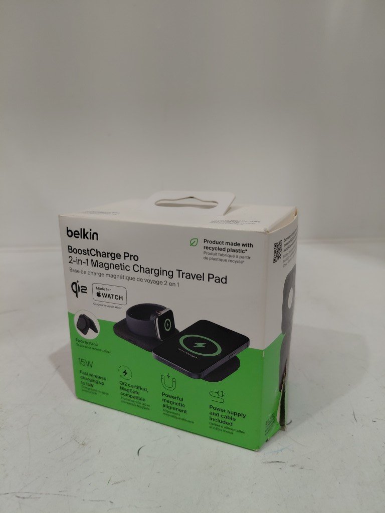 belkin 2-in-1 portable magnetic charging pad for phones & apple watch series 7,8,9 & ultra 1 & 2 - black (model: WIZ026ttBK)