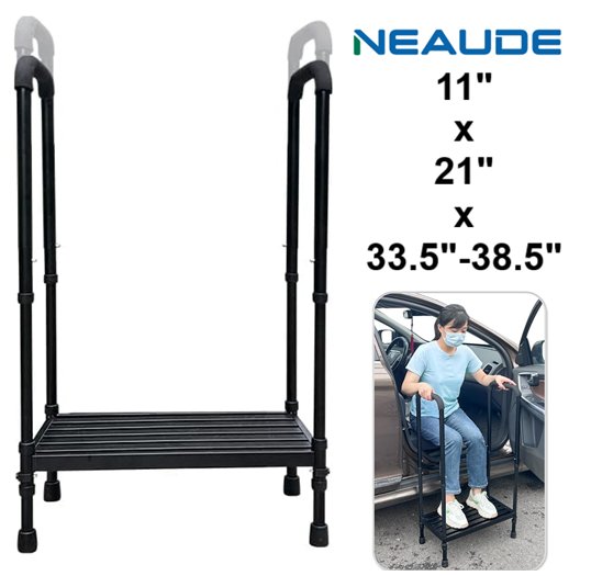 Neaude Adjustable Medical Bariatric Step Stool With Handles - 11" x 21" x 33.5"-38.5" - Black