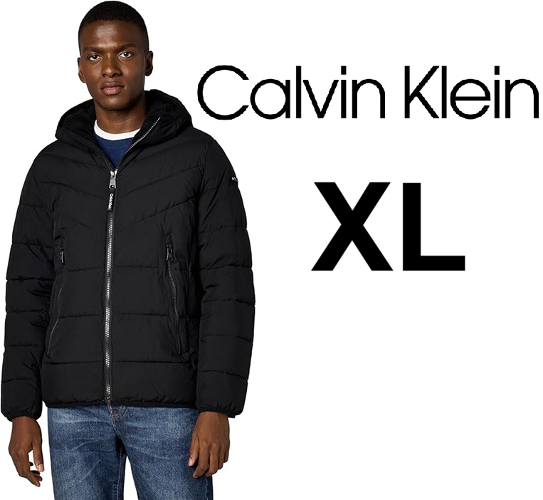 Calvin Klein Mens Hooded Stretch Jacket - XL - Black (Model: CM155201)