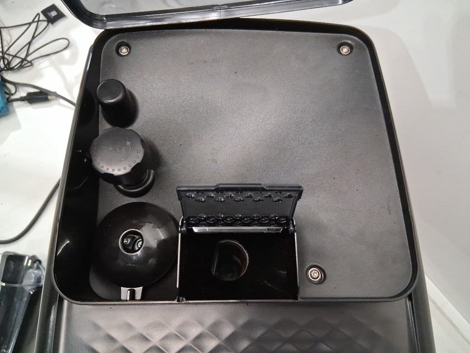 + Item is missing the frother cup lid + + The water tank filter is snapped/cracked but still holds the filter + + Item has residual coffee grounds/stains around it + + Tested for basic power +