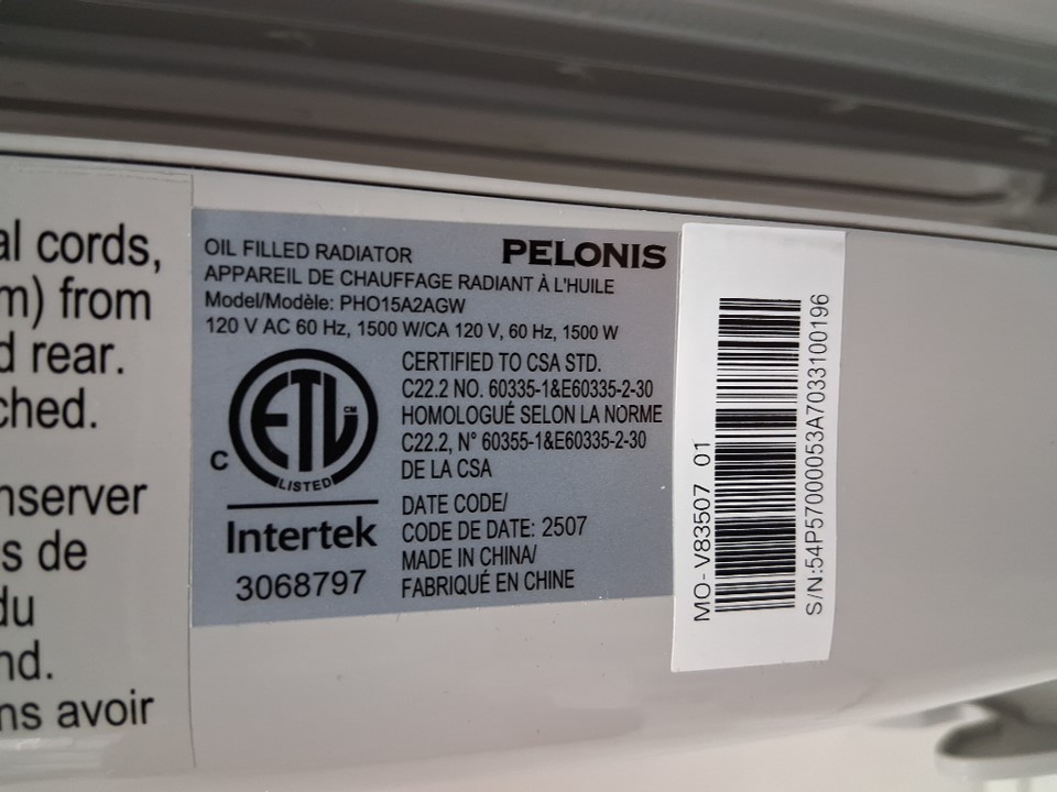 PELONIS oil filled electric radiant space heater - 1500w - GREY (model: PHO15A2AGW)