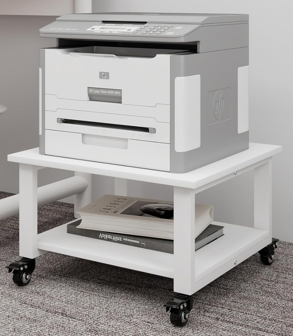 Natwind 2 Tier Laser Printer Stand On Wheels - 150LBS Max - White
