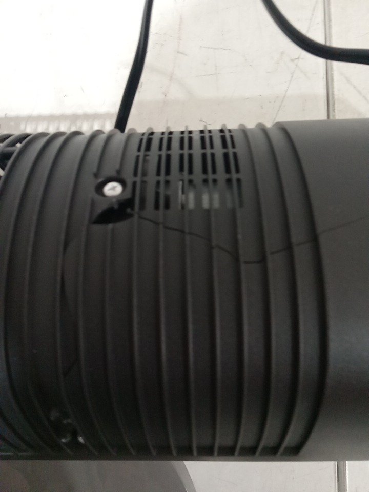 Their is a crack on the back of the plastic seemingly due to shipping and handling and this item is missing its remote control, this does not cause issue as the fan can be used with its manual touch settings, this item has been tested for power and is confirmed to be working. see photos