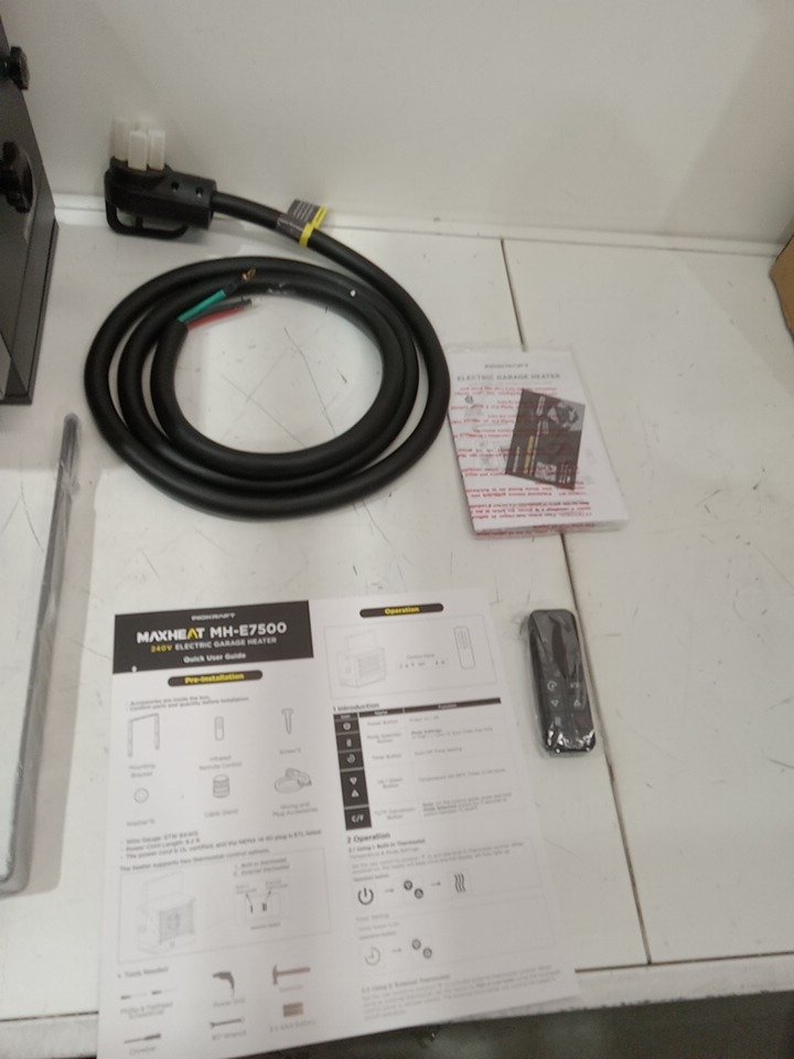 InoKraft Electric Garage Heater with plug - 7500W, Ceiling Mount, Digital Thermostat, Remote control, 24-hour Timer- 240v - black/grey (model: mh-e7500)