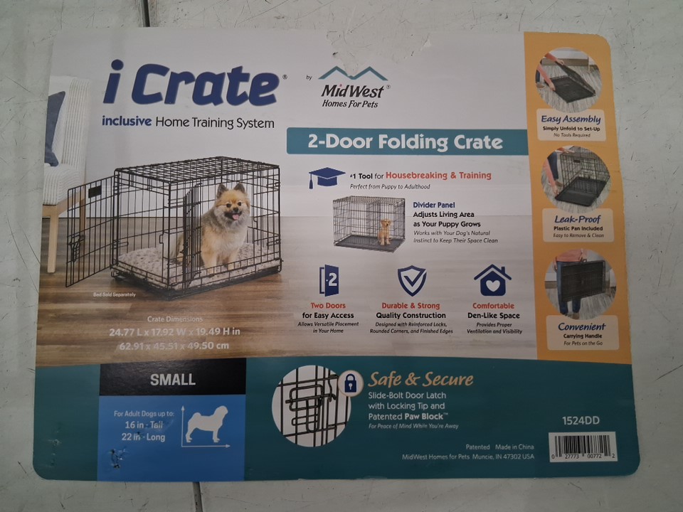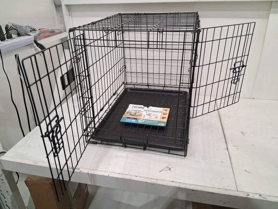 MIDWEST ICRATE DOUBLE DOOR FOLDING METAL DOG CRATE WITH LEAK PROOF TRAY - 24" x 18" x 19" (small) - BLACK (MODEL: 1524DD)