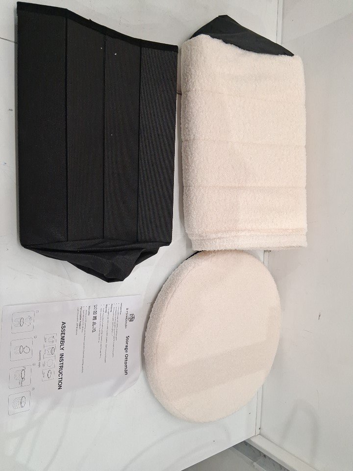Round Ottoman/Footstool/FOOTREST with Storage & TRAY for Living Room, Bedroom, Dorm - 15.7" x 22" - White