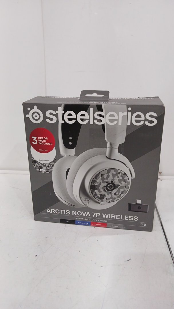 Steelseries Arctis Nova 7P Wireless Bluetooth Gaming Headset with USB-C Receiver, Multi-Booster Pack, 38hr Battery, and Magnetic Sideplates - Multiplatform - WHITE (model: hs31)