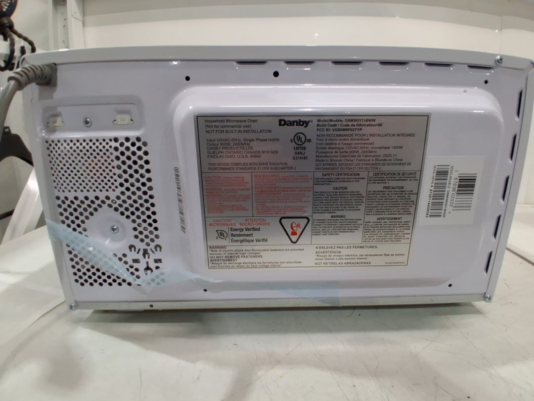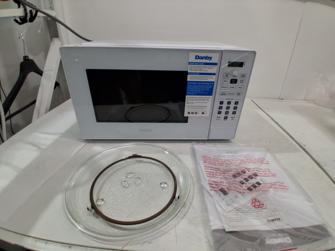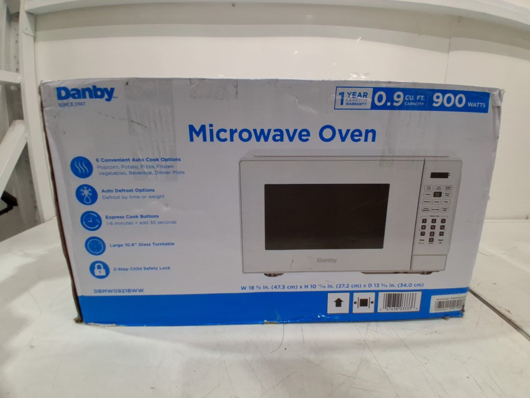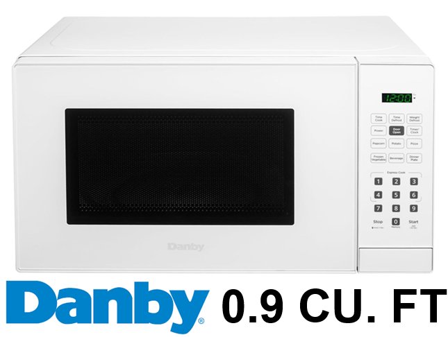 Danby Countertop Microwave with 10 Power Levels, 6 Auto-Cook Presets, Express Cook + 30 Sec, Auto Defrost & Child Lock, 0.9 Cu. Ft. 900Watts, White (MODEL: DBMW0921BWW)