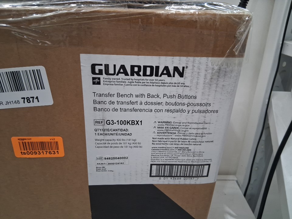 MEDLINE GUARDIAN bathtub TRANSFER BENCH WITH BACK support & suction feet - max 400lbs - GREY (MODEL: G3-100KBX1)
