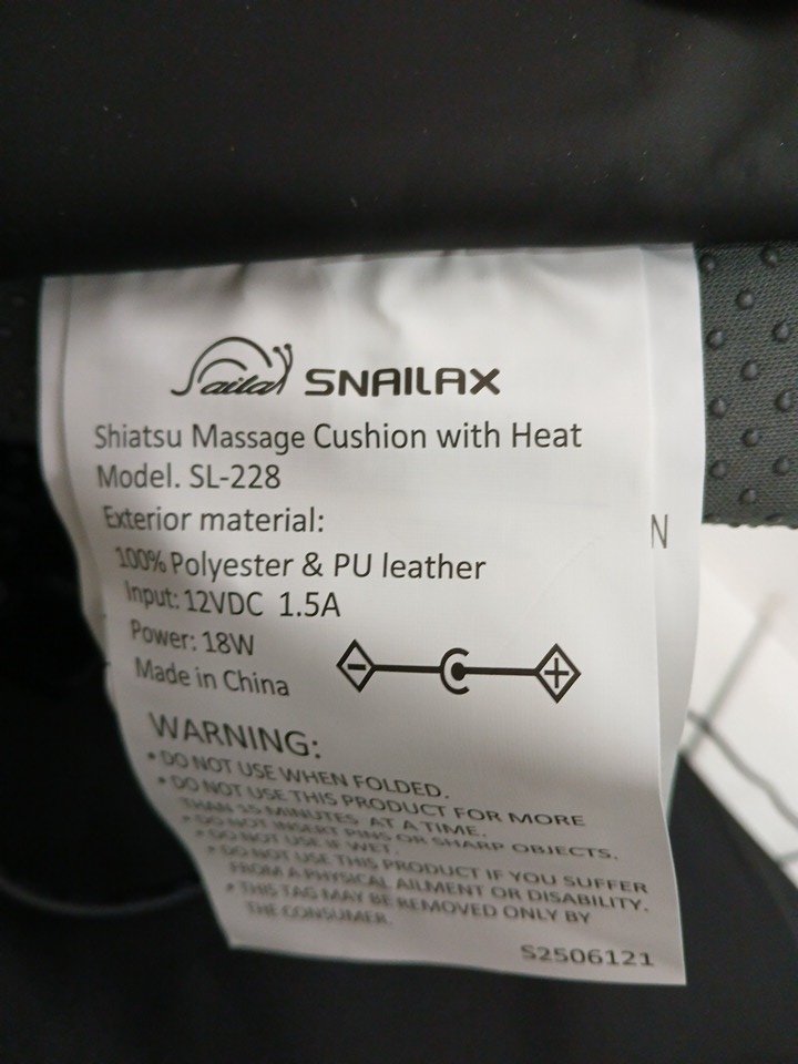Snailax chair back massager with heat Shiatsu massage and vibration - Black (model: SL-228)