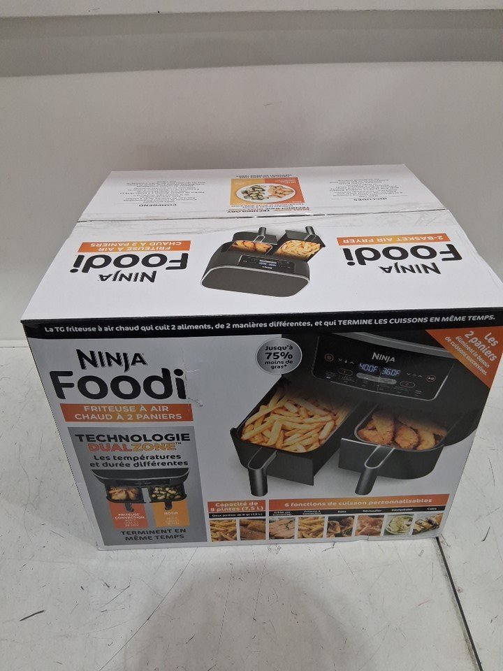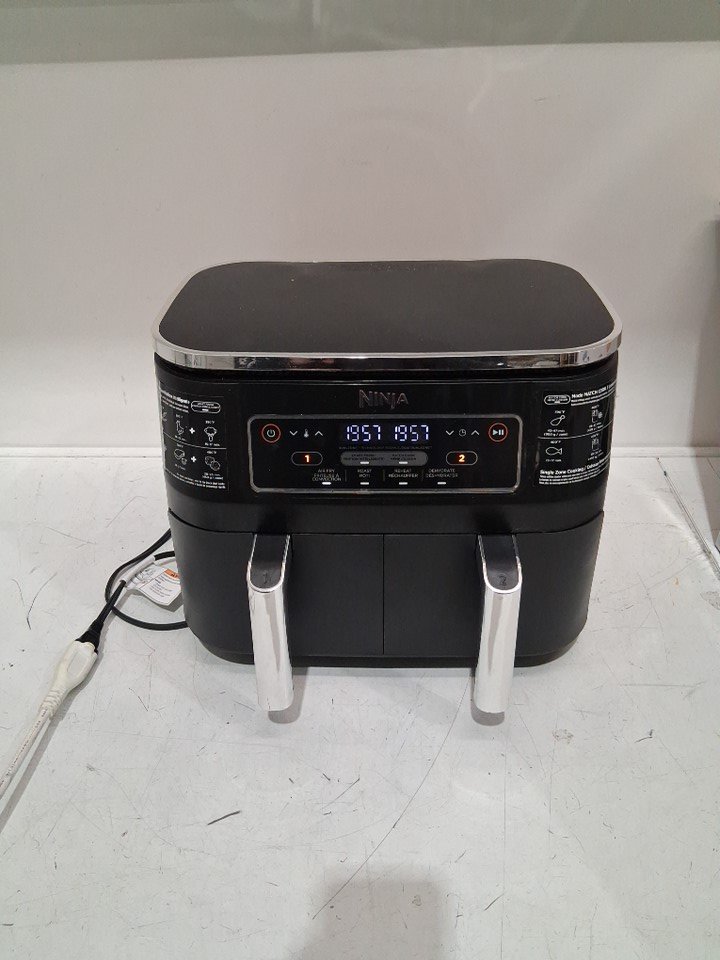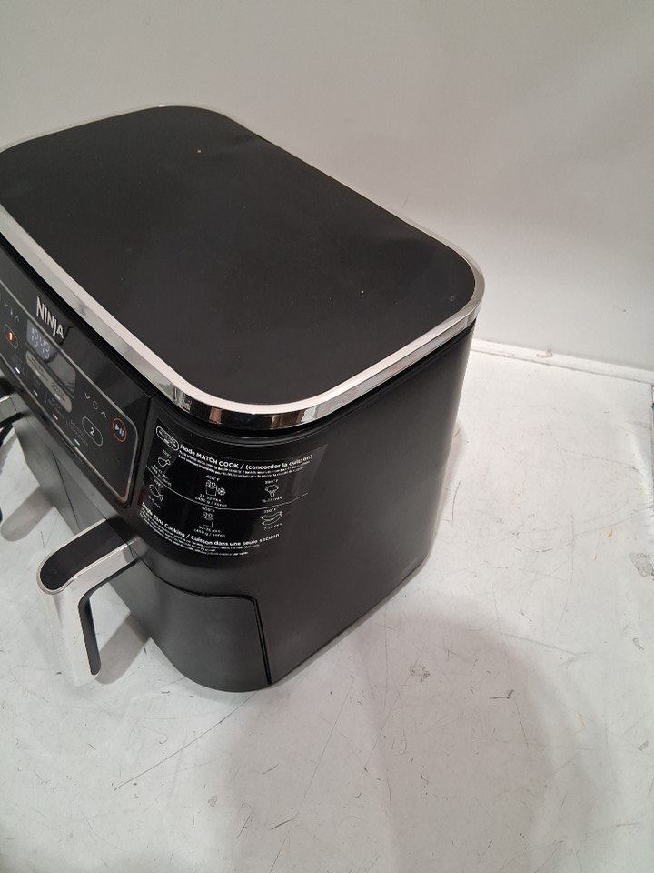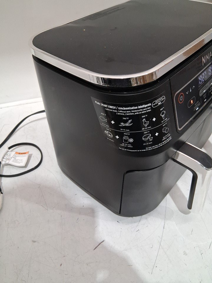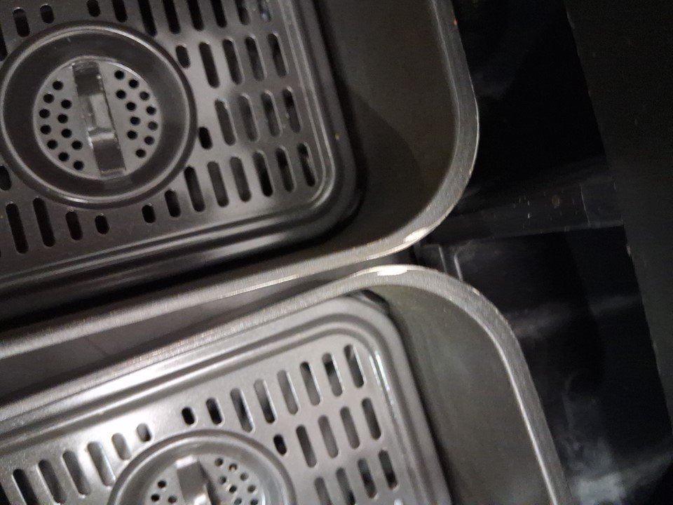 Tested for power, working. Signs of light use, the top trim on the back is slightly melted, there is grease inside of the fryer and pans. Scratches on the top side of the cooking pan. See photos
