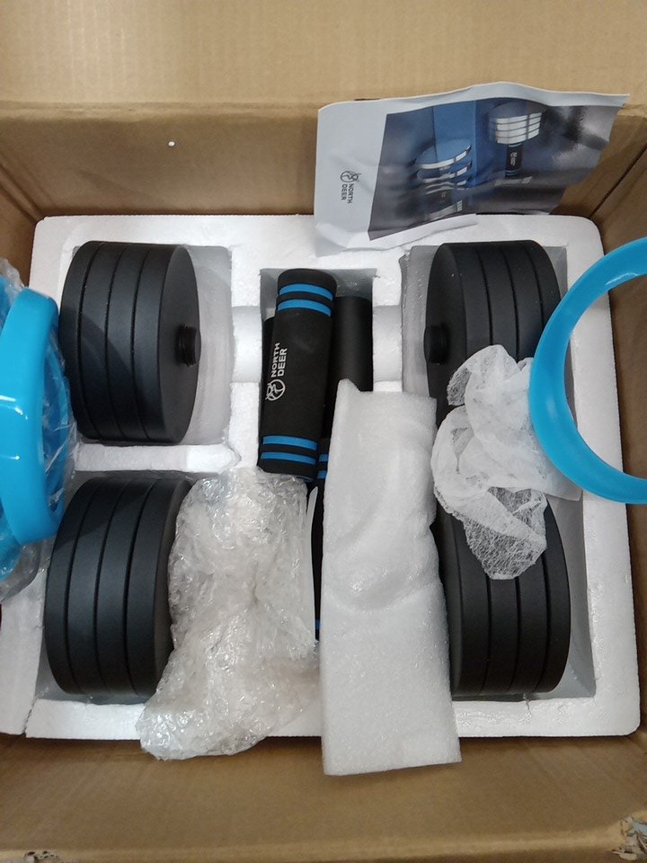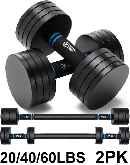 2pk Northdeer Steel Ultracompact & Adjustable Dumbbells WITH FOAM handles - 20/40/60LBS - 20LBS EACH - black/blue