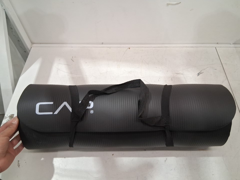 CAP Barbell High Density Exercise Yoga Mat with Strap - 1/2" x 24"x 68" - black (model: mtis-6523-12bk)