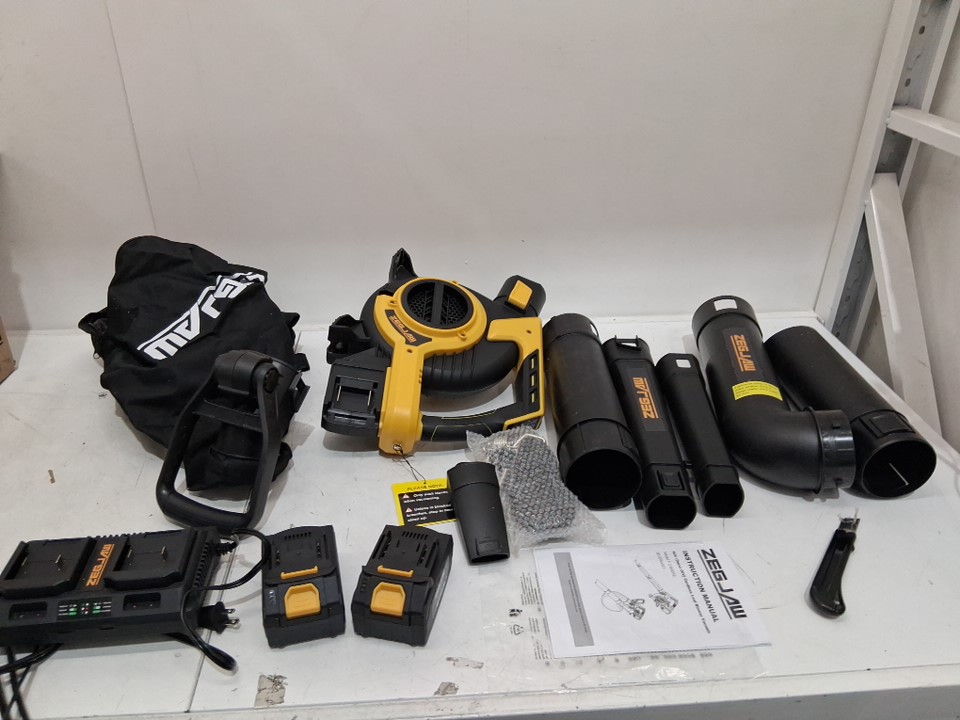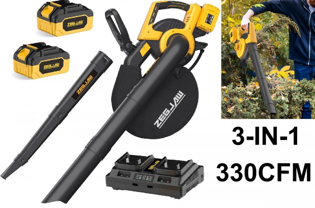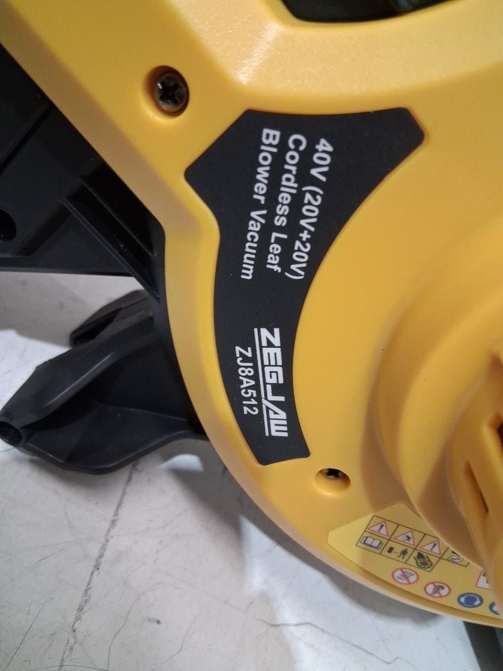 ZEGJAW 3-in-1 Cordless Leaf Blower, VACUUM, leaf mulcher with bag - 5-Speeds - 40V (20v+20v) - 330CFM - yellow/black (model: ZJ8A512)