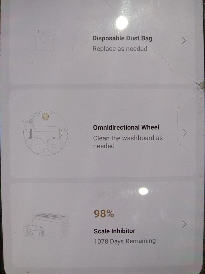 Item tested for power, charging, basic functionality and wifi/app connectivity. There is dust/debris on/inside both the robot vacuum and base station from previous use as well residual water/residue on both the clean/dirty water tanks. There is some gentle wear on the side brush and main roller brush of the robot vacuum. Item marked with having issue as it is missing the mop pad attachments with the mop pads and the dust bin bag for the base station. Customer will require purchasing these pieces in order to use the item 100%. Please see attached photos for everything included in the item.