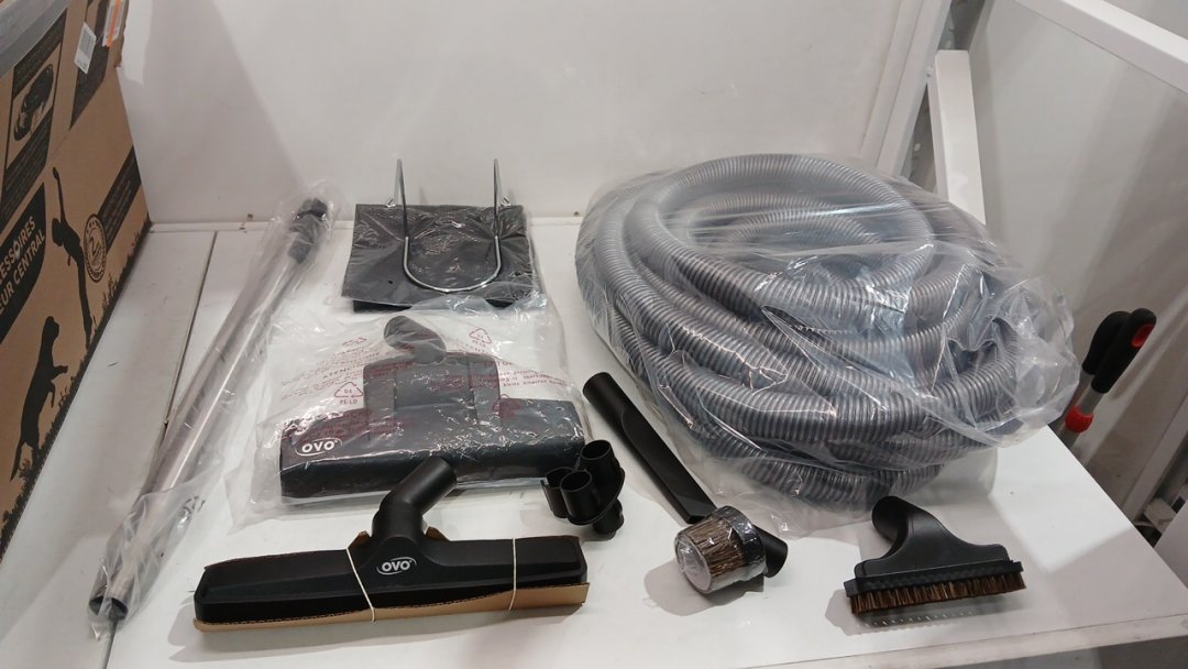 OVO CENTRAL VACUUM DELUXE PLUS ACCESSORIES/attachments KIT FOR HARD SURFACES - 35FT HOSE - GREY - (MODEL: KIT-LV35DP-OVO)