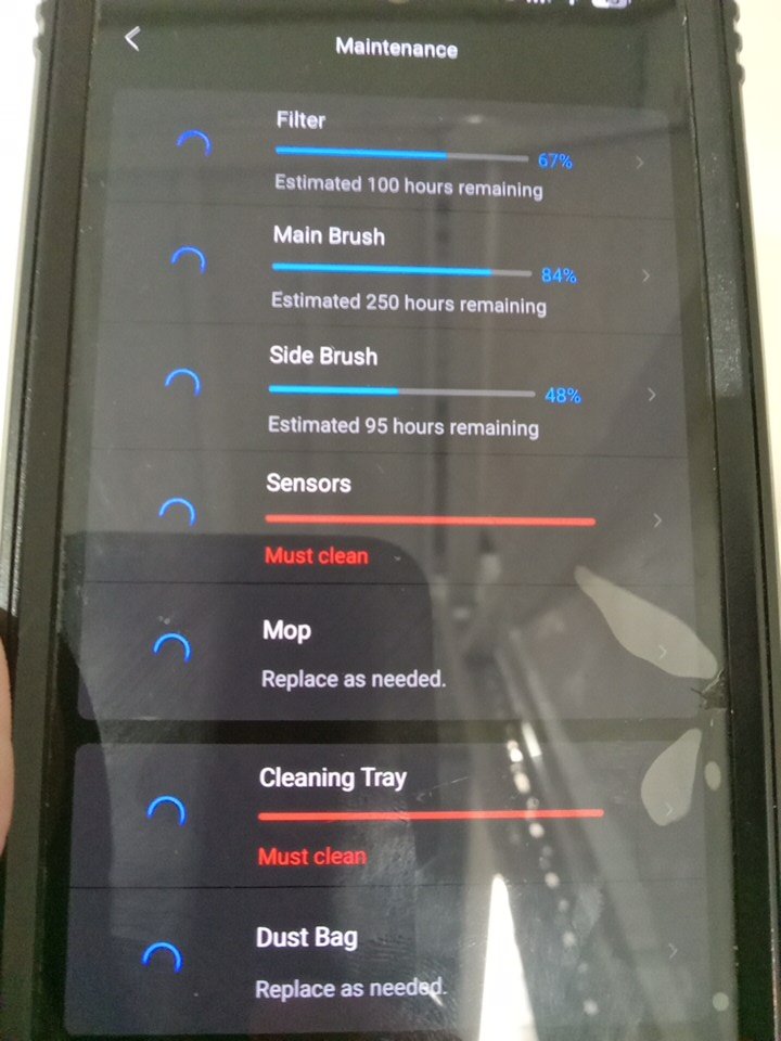 **Tested for power, charging, wifi/app connectivity, basic functions (mapping/return home).** There is dust/debris on/inside both the robot vacuum and base station as a result from previous use. There is wear on the side brush, main brush and the mop pads. Please see photos for certain maintenance requirements that are recommended to be performed prior to using the item to ensure that it functions/works 100%.